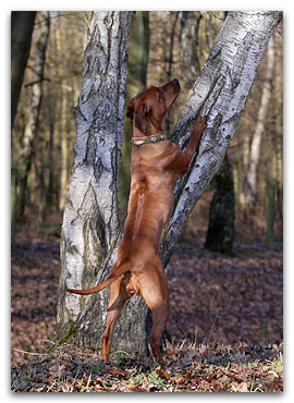 Springe am Baumstamm hoch.